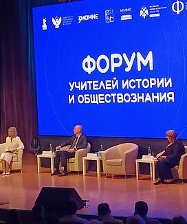 23–24 октября 2025 года делегация ярославских педагогов принимает участие в работе Всероссийского форума учителей истории и обществознания, организованного Департаментом государственной общеобразовательной политики и развития дошкольного образования Министерства Просвещения России совместно с Общероссийской общественно-государственной просветительской организацией «Российское общество «Знание» и Российским военно-историческим обществом.