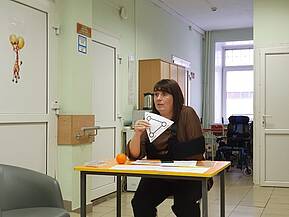 27 октября состоялись занятия в областной детской клинической больнице № 3 для родителей детей с ДЦП: «Психология – родителям», психологические ресурсы родителей. Общаться с ребенком, как?» Занятие провела Боярова Елена Станиславовна, старший преподаватель кафедры педагогики и психологии Института развития образования. Родители проявили огромный интерес к содержанию занятия.