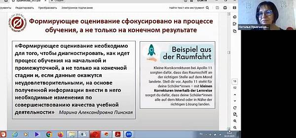 18 октября 2025 года старший преподаватель кафедры общего образования Наталья Владимировна Урывчикова провела онлайн-семинар "Принципы и инструменты формирующего оценивания в преподавании немецкого языка" для Межрегиональной Ассоциации учителей и преподавателей немецкого языка (МАУПН).