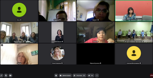 Участники: специалисты служб сопровождения Центра «Доверие» г. Ярославля, Центра «Содействие» г. Ростова, Центра «Стимул» г. Тутаева, Центра «Гармония» г. Углича, Некрасовского, Ярославского, Г-Ямского, Даниловского, Мышкинского, Борисоглебского муниципальных районов, руководители АНО «Моя семья» (всего 23 подключения, 50 человек).