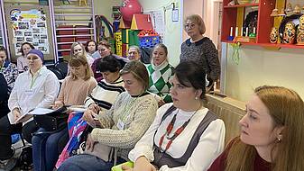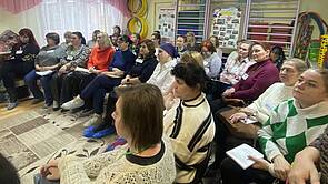 32 педагога из детских садов г. Ярославля стали участниками активностей дня – коммуникативного тренинга (ведущий Захарова Т.Н.), включились в практикум по организации работы консультационного пункта в детском саду (Ведущие Керимова Е.А., старший воспитатель, Сизова А.В., учитель-логопед «ЦРР - детский сад 72»), ознакомились и опытом работы педагога в период адаптации и детей и семей воспитанников к условиям ДОО (Овчинникова О.А., воспитатель «ЦРР - детский сад 72»).